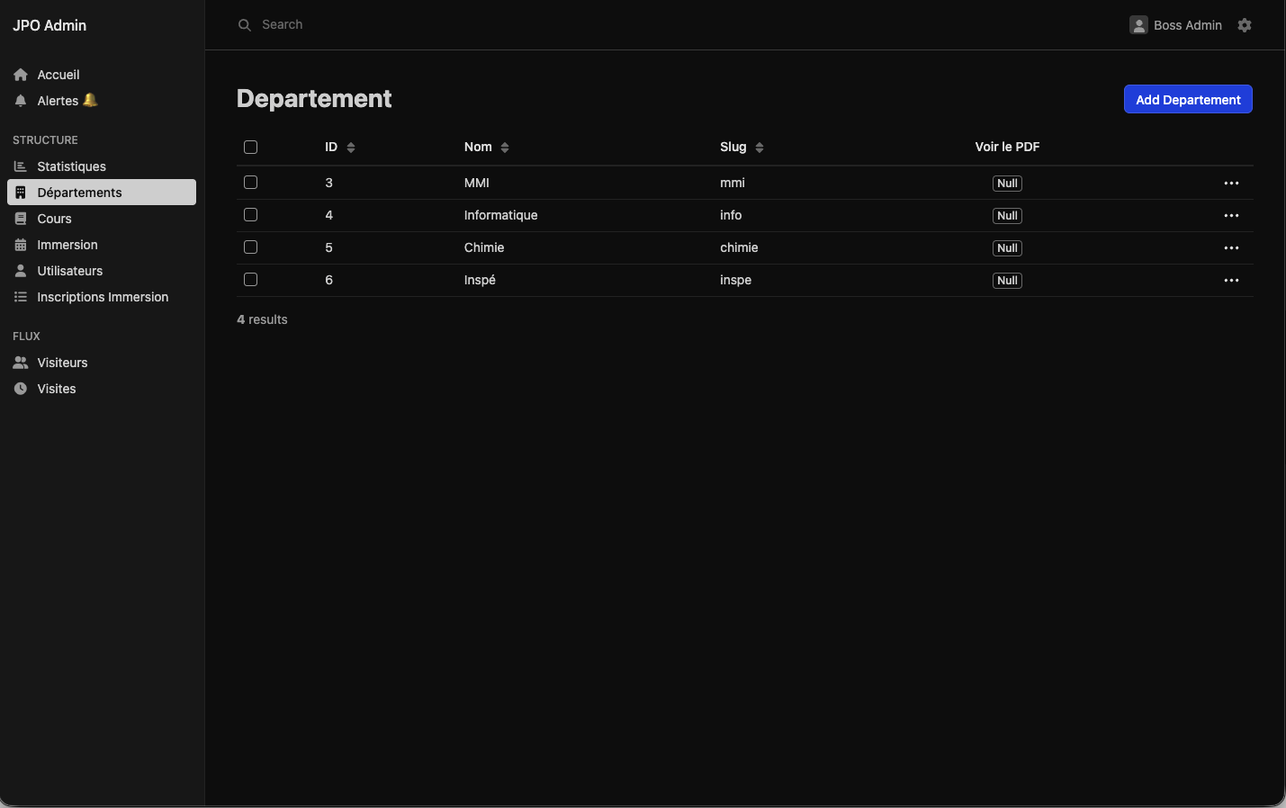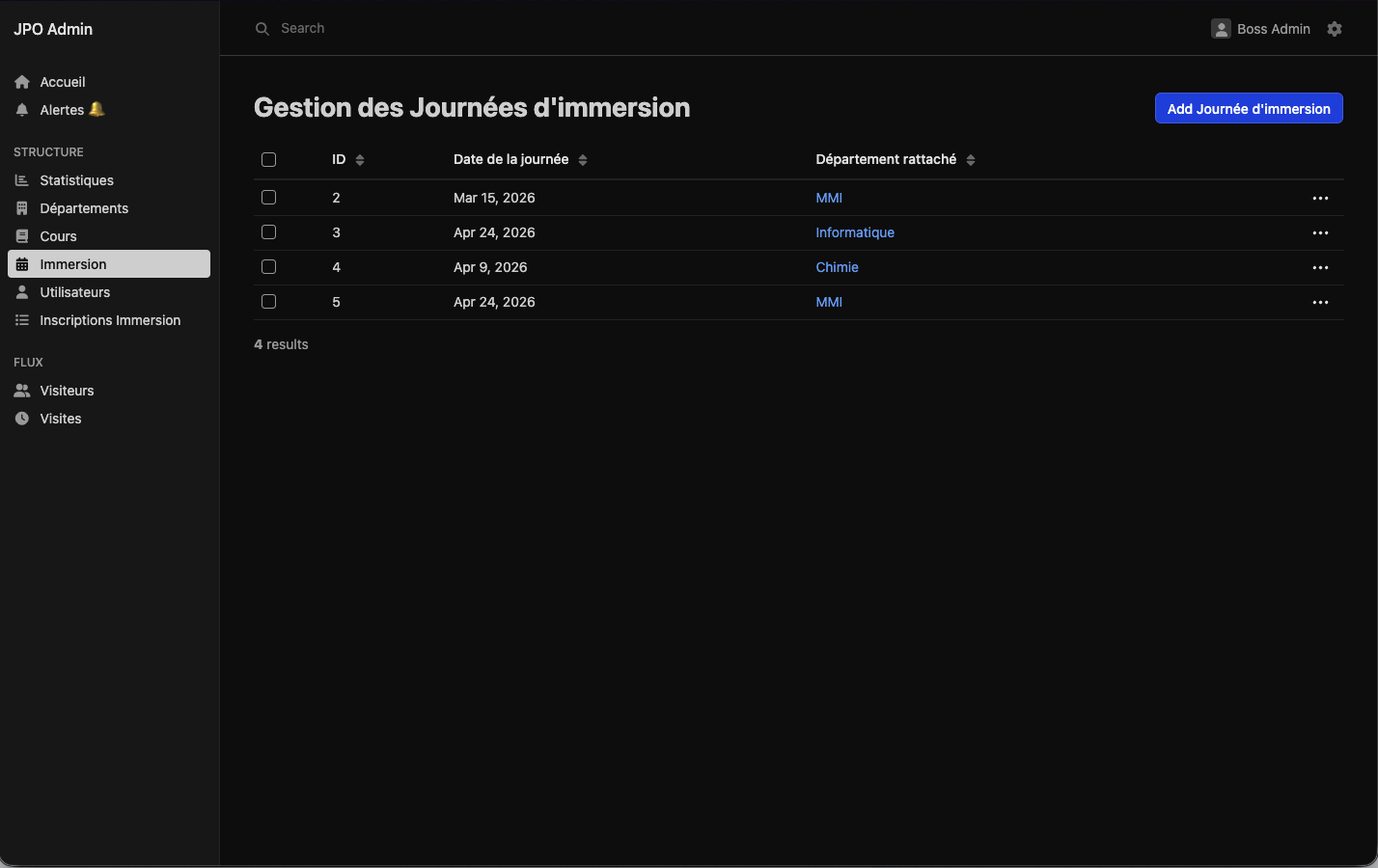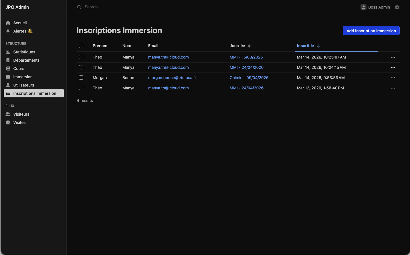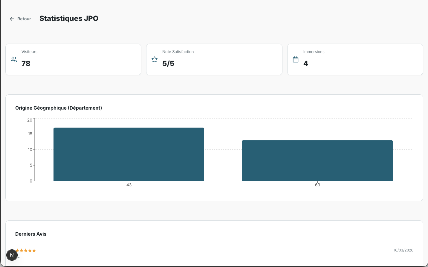 Application fullstack réalisée en binôme pour digitaliser la gestion des Journées Portes Ouvertes.